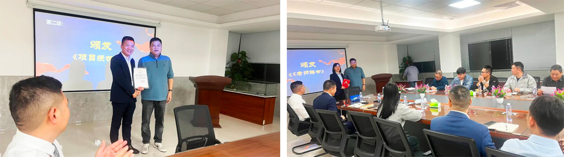 會(huì)上,陳總為遠(yuǎn)大方略項(xiàng)目組頒發(fā)授權(quán)書,授予項(xiàng)目管理權(quán),同時(shí)為項(xiàng)目組老師頒發(fā)聘書,聘請老師為此次改善項(xiàng)目輔導(dǎo)老師,全力推進(jìn)此次項(xiàng)目開展。