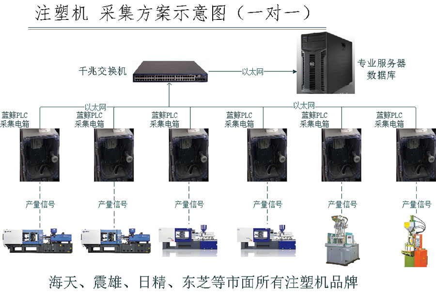 產(chǎn)量采集:通過注塑機PLC連接,通過無線網(wǎng)絡(luò)數(shù)據(jù)采集器。