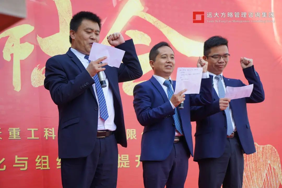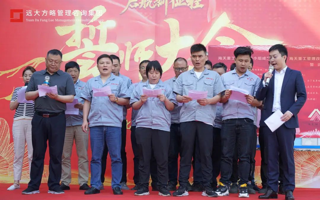 任正非說(shuō),產(chǎn)品發(fā)展的路標(biāo)是客戶(hù)需求導(dǎo)向,企業(yè)管理的目標(biāo)是流程型組織建設(shè)。此次變革就是增強(qiáng)組織能力,提高企業(yè)的管理水平和競(jìng)爭(zhēng)力,支撐公司戰(zhàn)略目標(biāo)的實(shí)現(xiàn)。針對(duì)變革,老師有方法和工具,但是需要大家一起攜手將方案有效落地,推動(dòng)此次變革的順利進(jìn)行。會(huì)上遠(yuǎn)大方略項(xiàng)目組老師也上臺(tái)進(jìn)行了宣誓,必將全力以赴做好此次海天重工的項(xiàng)目改善,助力企業(yè)更成功。