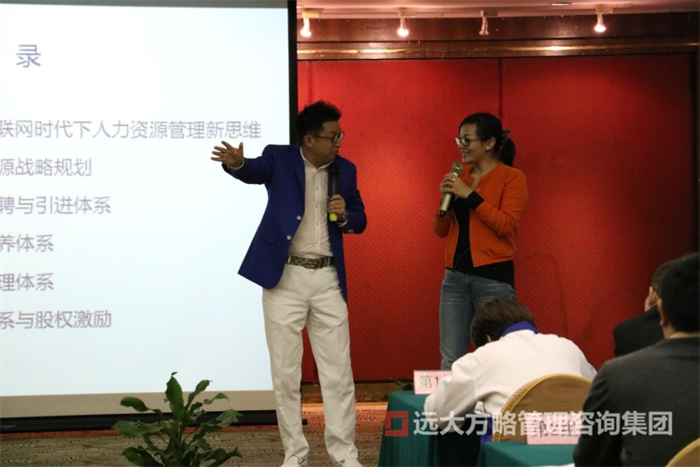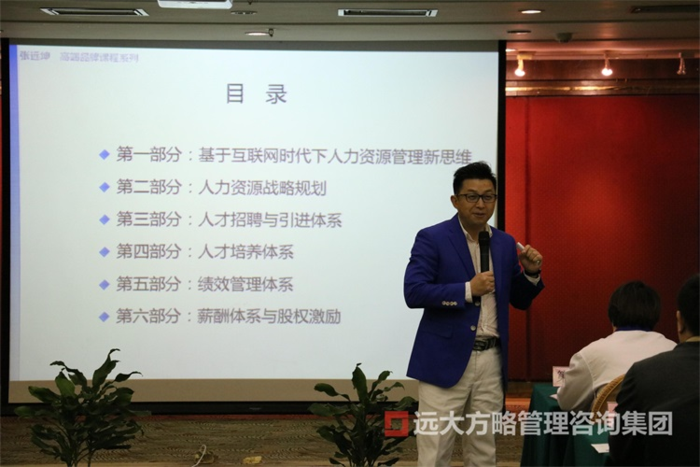 此次課程,我們很榮幸地邀請到了我們遠大方略人力資源模塊的合伙人張遠坤老師,張老師是智慧組織力、雙因子模式倡導者、人力資源管理實戰(zhàn)培訓顧問,其幽默的講課風格一度讓在座的“同學們”拍手稱絕。主持人由我們遠大方略的咨詢師劉建斌老師擔任。