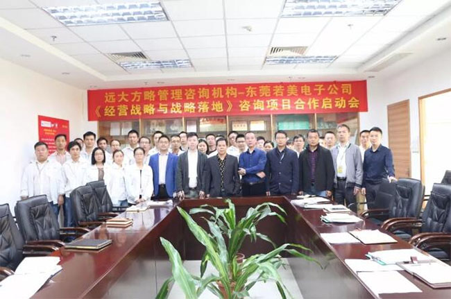 2018年3月22日,遠(yuǎn)大方略顧問吳新民老師、宋增進(jìn)老師、歐陽承喜老師聯(lián)袂進(jìn)駐東莞市若美電子科技有限公司(以下簡稱“若美電子”),與企業(yè)中高層管理團(tuán)隊(duì)20多人展開《經(jīng)營戰(zhàn)略與戰(zhàn)略落地》咨詢項(xiàng)目的深度研討,共同探討企業(yè)發(fā)展的新機(jī)遇。