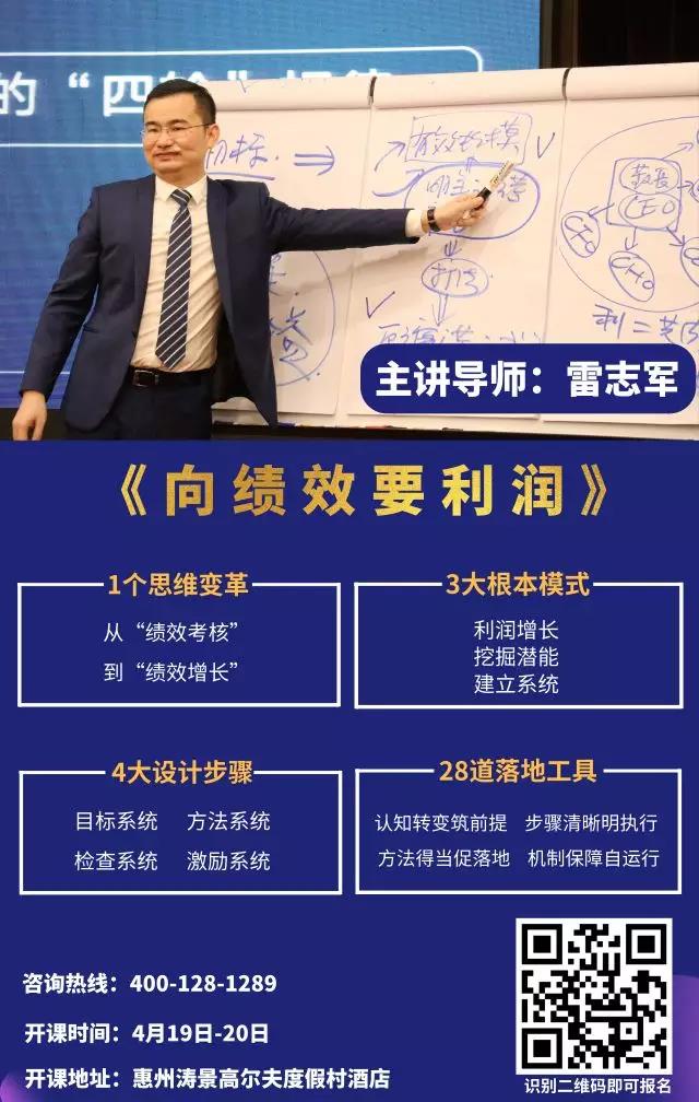 如果您想進(jìn)一步了解如何激活員工?如何為員工賦能?如何通過績效管理,實現(xiàn)企業(yè)利潤增長,老板身心自由?歡迎走進(jìn)本期由雷志軍老師主講的《向績效要利潤》的課程現(xiàn)場,您將會得到系統(tǒng)的答案。