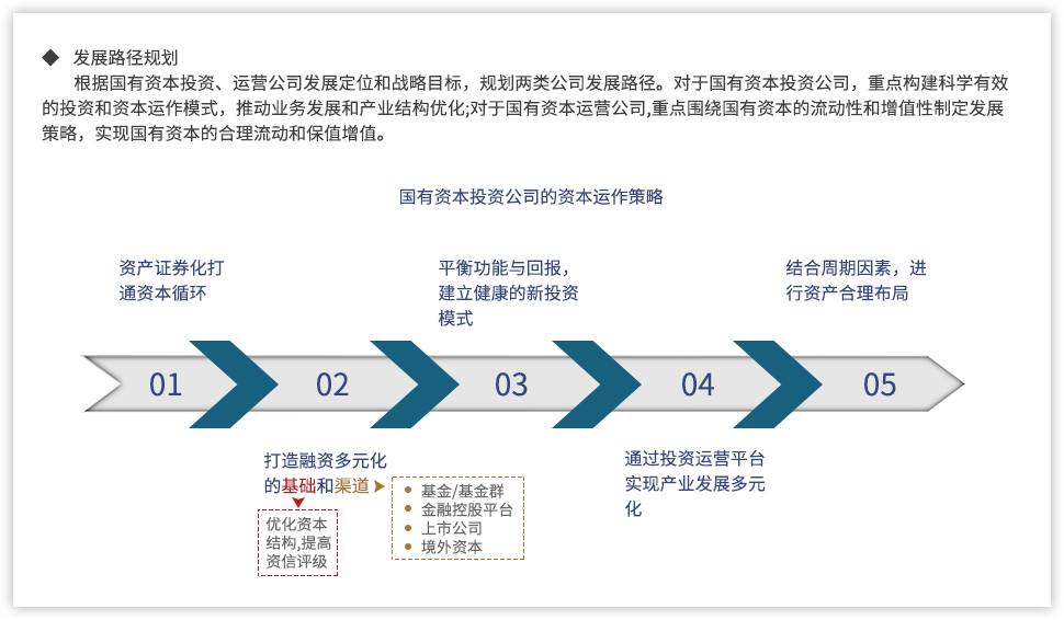 為了更好推動(dòng)國(guó)有資本投資、運(yùn)營(yíng)公司,提升國(guó)有資本運(yùn)營(yíng)能力,遠(yuǎn)大方略認(rèn)為,需要進(jìn)一步明確國(guó)有資本投資、運(yùn)營(yíng)公司的定位,基于國(guó)有資本整體視角進(jìn)行產(chǎn)業(yè)和業(yè)務(wù)的戰(zhàn)略定位,并通過(guò)強(qiáng)化企業(yè)內(nèi)部管理,提升國(guó)有資本的運(yùn)營(yíng)效率。