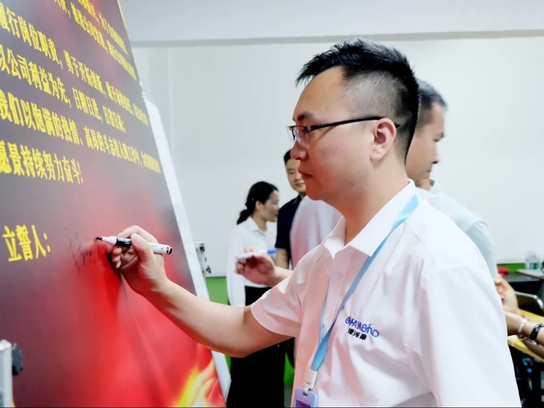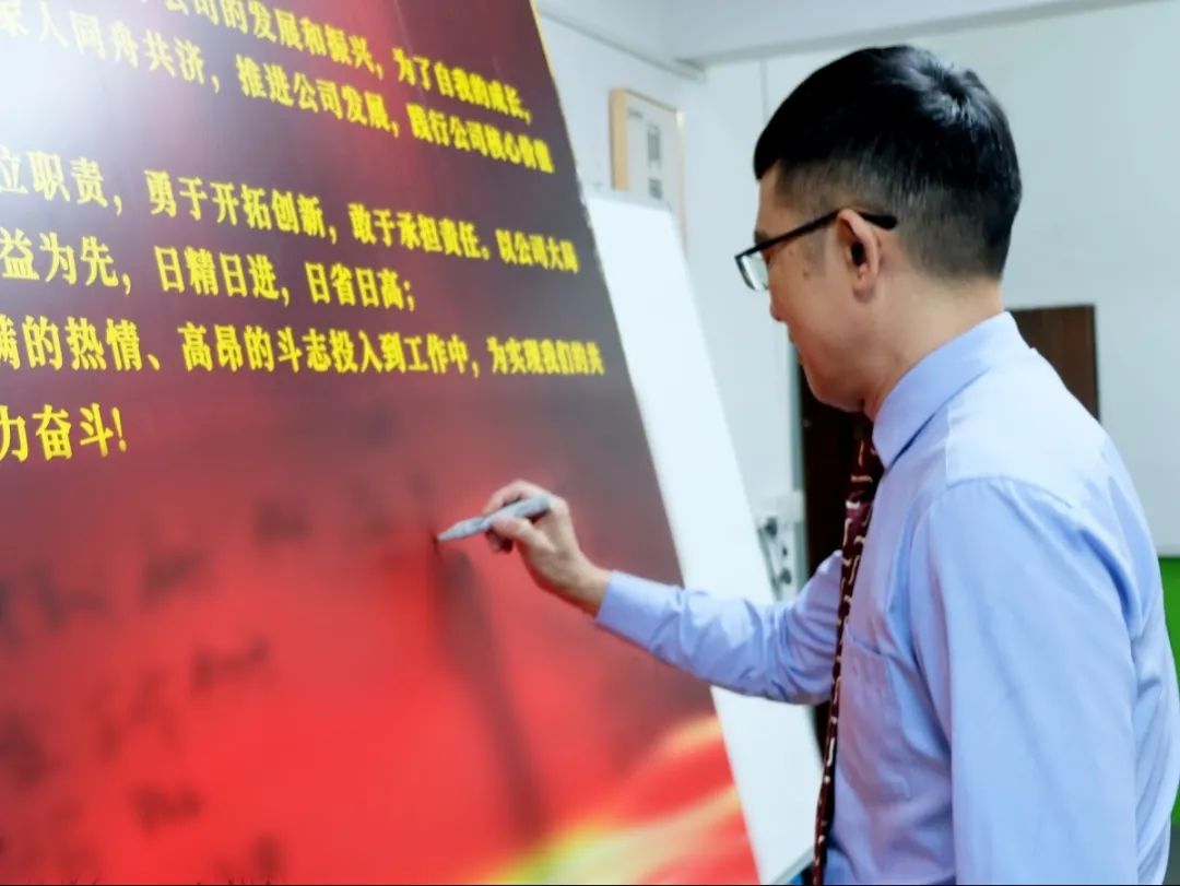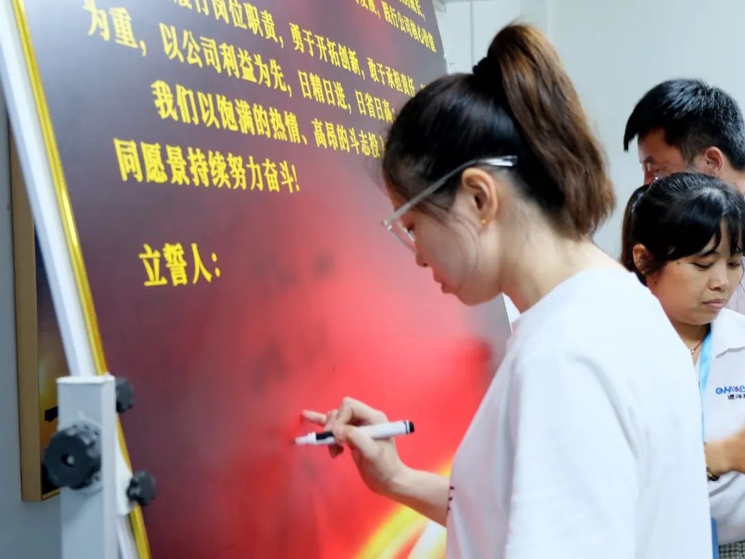 會(huì)上,萬(wàn)總為項(xiàng)目老師頒發(fā)了授權(quán)書(shū)和聘書(shū),帶領(lǐng)項(xiàng)目關(guān)鍵人員在誓詞上簽字并集體宣誓,鼓勵(lì)大家和公司共同成長(zhǎng)進(jìn)步。