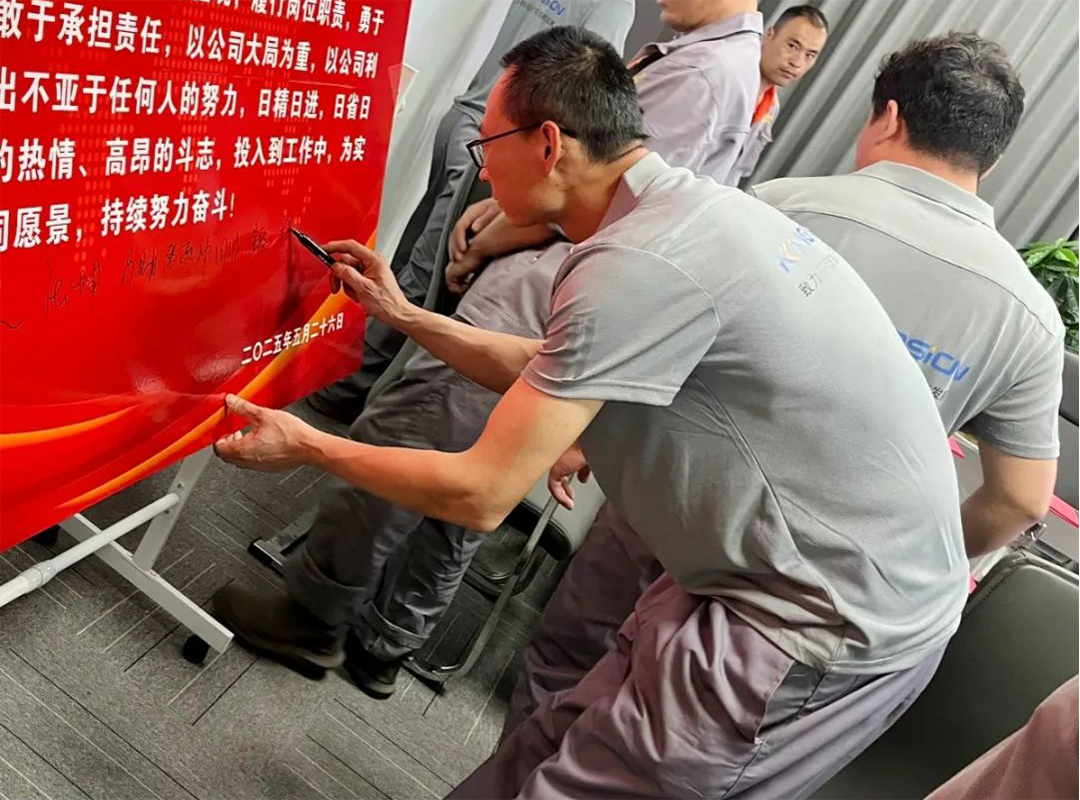 會上,于總為項(xiàng)目老師頒發(fā)了聘書,給項(xiàng)目關(guān)鍵人員頒發(fā)了任命書,帶領(lǐng)大家在誓言上簽下名字并集體宣誓。鼓勵大家積極投身變革提升能力,為公司持續(xù)發(fā)展增添助力。