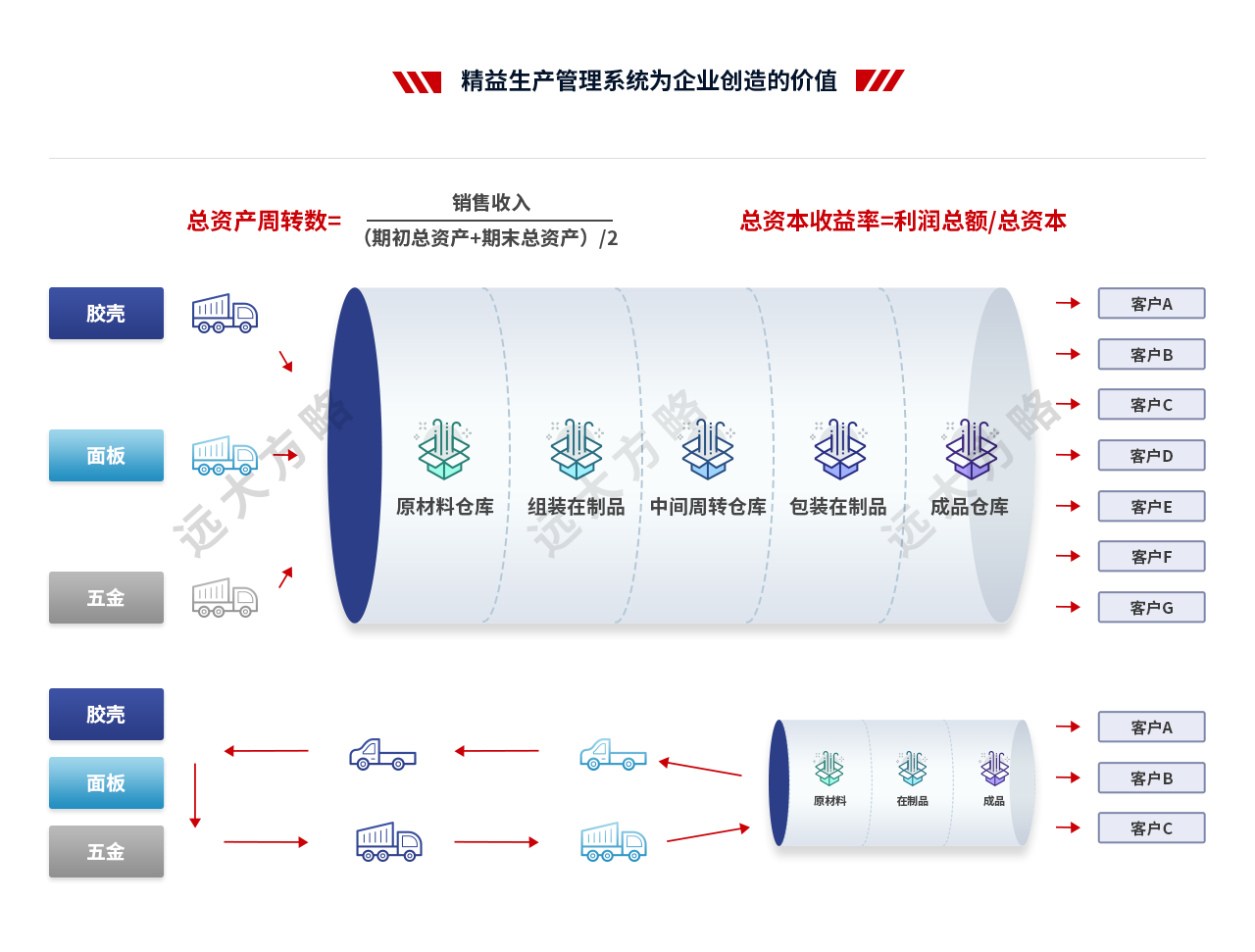 3、數(shù)據(jù)增長:精益整體成熟度提升33%、訂單準(zhǔn)交率提升77%、生產(chǎn)周期整體縮短29%、庫存容積率提升50%;導(dǎo)入了供應(yīng)鏈管理與精益生產(chǎn)模式,在領(lǐng)導(dǎo)理念、教育和培訓(xùn)、客戶與流程導(dǎo)向、均衡化和設(shè)備管理、目視化管理、職責(zé)、品質(zhì)內(nèi)建、問題解決、授權(quán)員工、持續(xù)改善系統(tǒng)等10個方面有突出提升;在流動裝配、加工單元、6s與目視化、內(nèi)部物流、標(biāo)準(zhǔn)作業(yè)、精益意識等6個方面變化顯著。