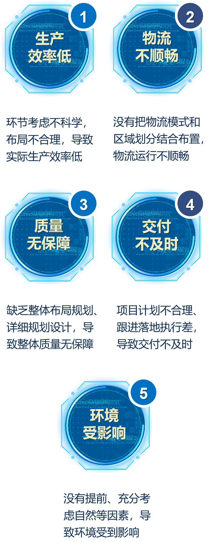 ①自制件全部整合規(guī)劃,消除園區(qū)間長距離搬運(yùn);②基本實(shí)現(xiàn)園區(qū)人車分流;③物流自動化。